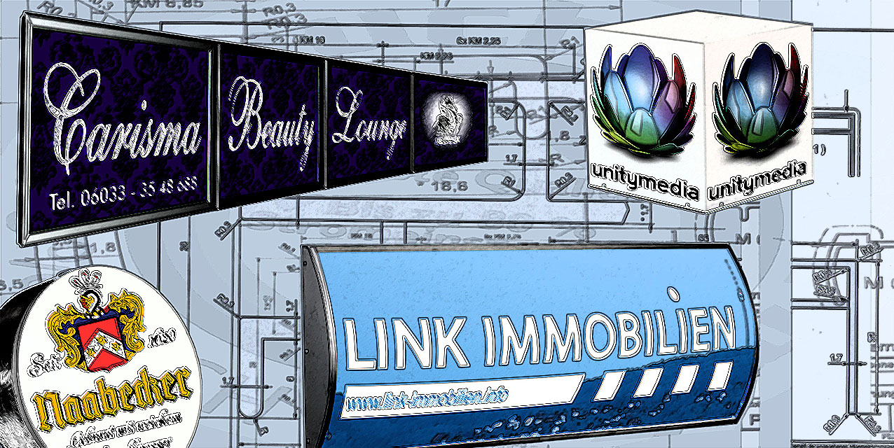 Layout und Design (nicht im Preis enthalten):Gern erstellen wir auch das komplette Layout und Design Ihres Leuchtkastens inkl. Beschriftung. Auf Ihre Anfrage über unser Kontaktformular erhalten Sie ein individuelles Angebot.